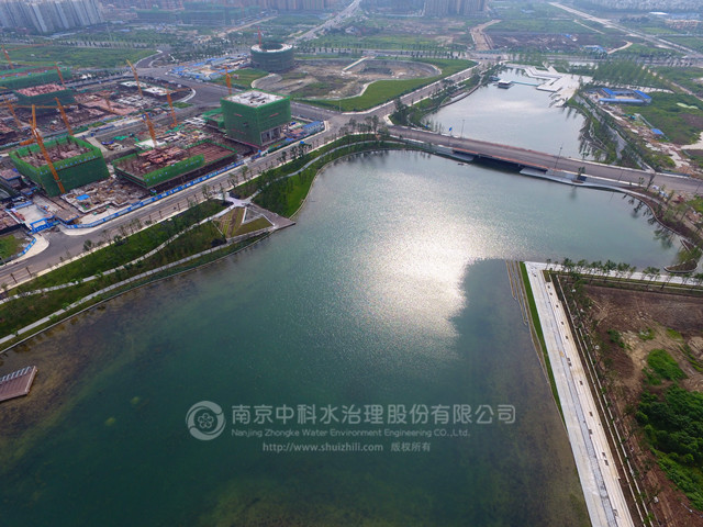 新川之心中央公園包括西區(qū)和東區(qū),西部湖區(qū)總面積約為95000m2,分為東西兩片水域,其中東湖水面面積約為60000 m2,西湖水面面積為35000 m2,常水位時平均水深約2m。由南京中科水治理股份有限公司對湖區(qū)進(jìn)行生態(tài)系統(tǒng)的構(gòu)建。